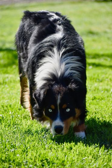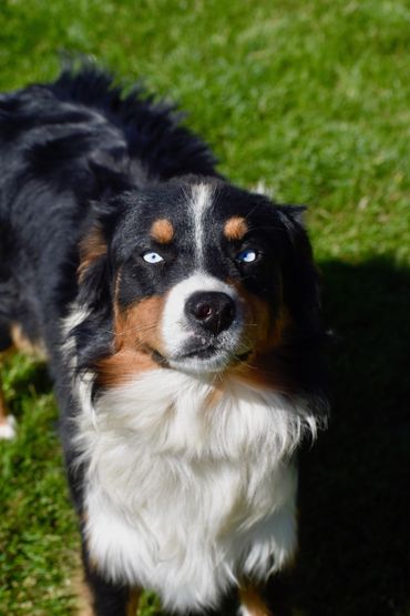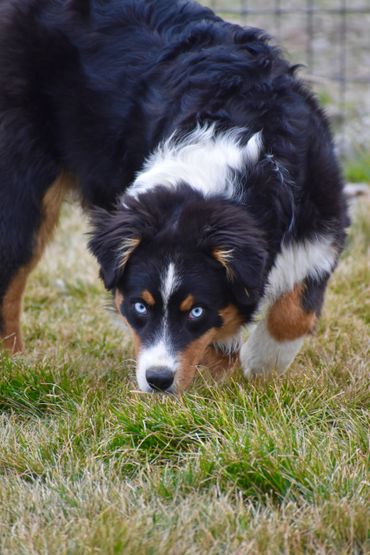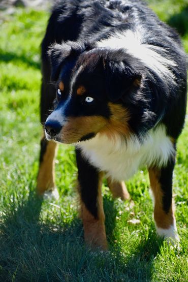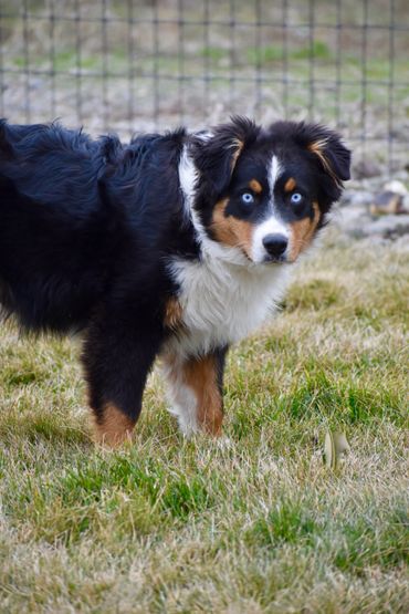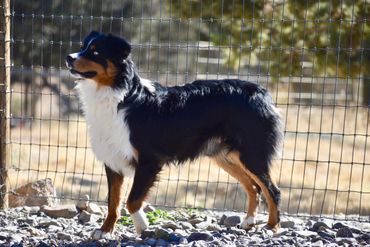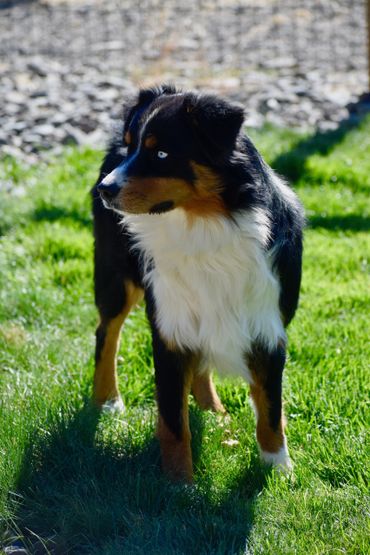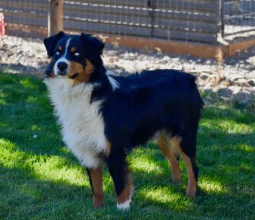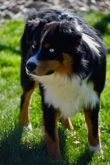 Buff is our newest boy addition to the family, and we couldn't be more excited about him. He has an amazing disposition to go along with his handsome looks. From his crisp copper markings to his lovely black coat and bright blue eyes... he is an absolute showstopper. He has a gorgeous natural stack, and his conformation is perfect.