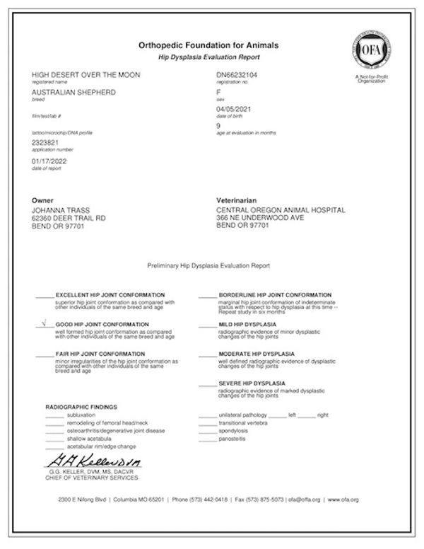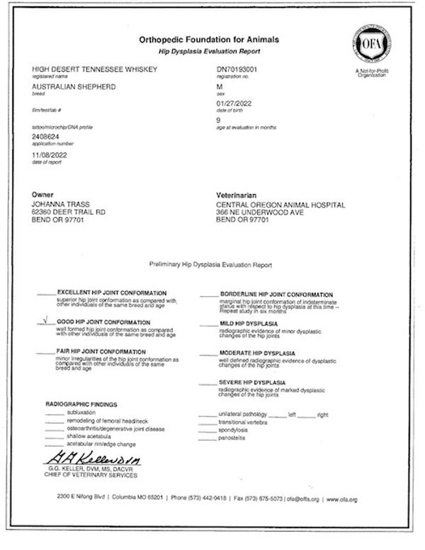 Penn-Hip scores are pending (his parents both have excellent hip scores)